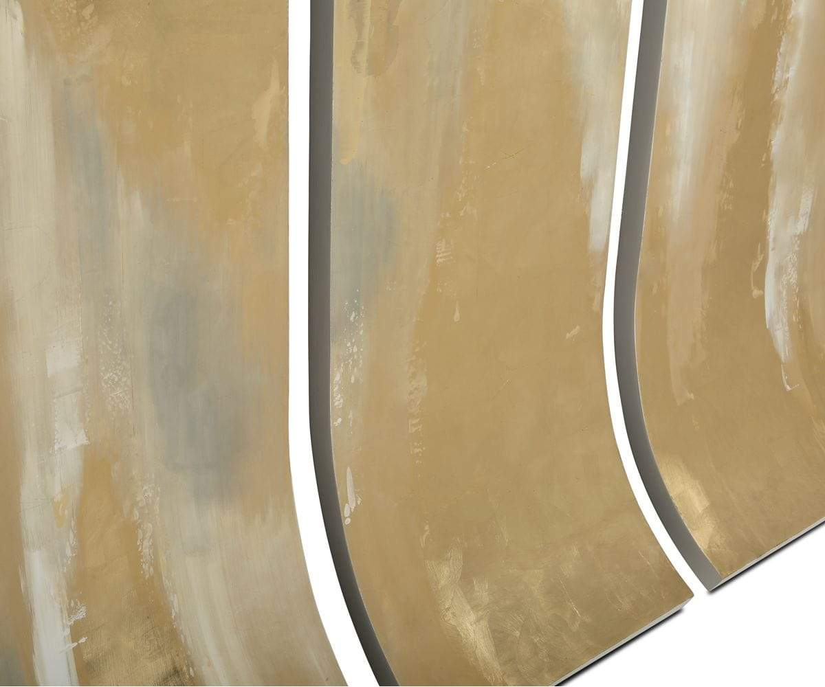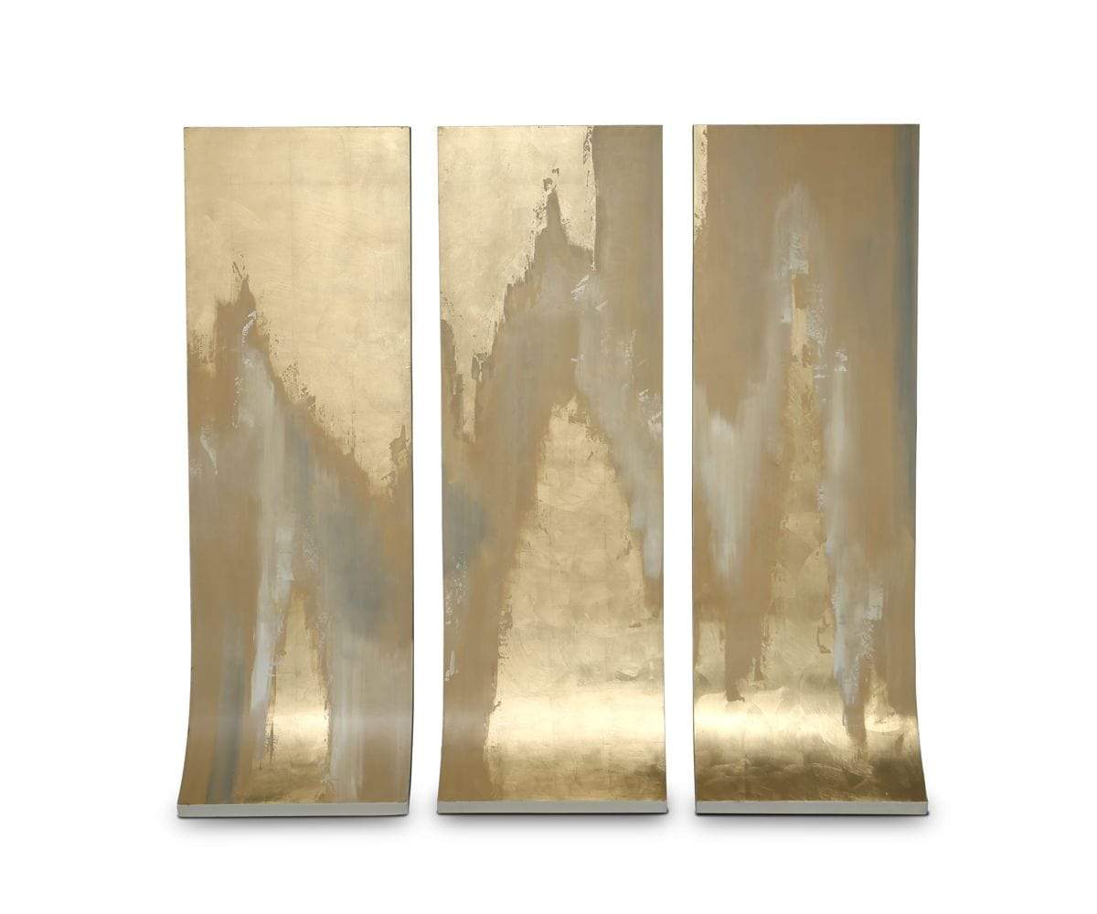 Blending the sensibilities of burnished brass and modern industrialism, the Shadow Colored wall art is a statement-maker in any household. Each three-piece design is crafted individually, making every one unique!