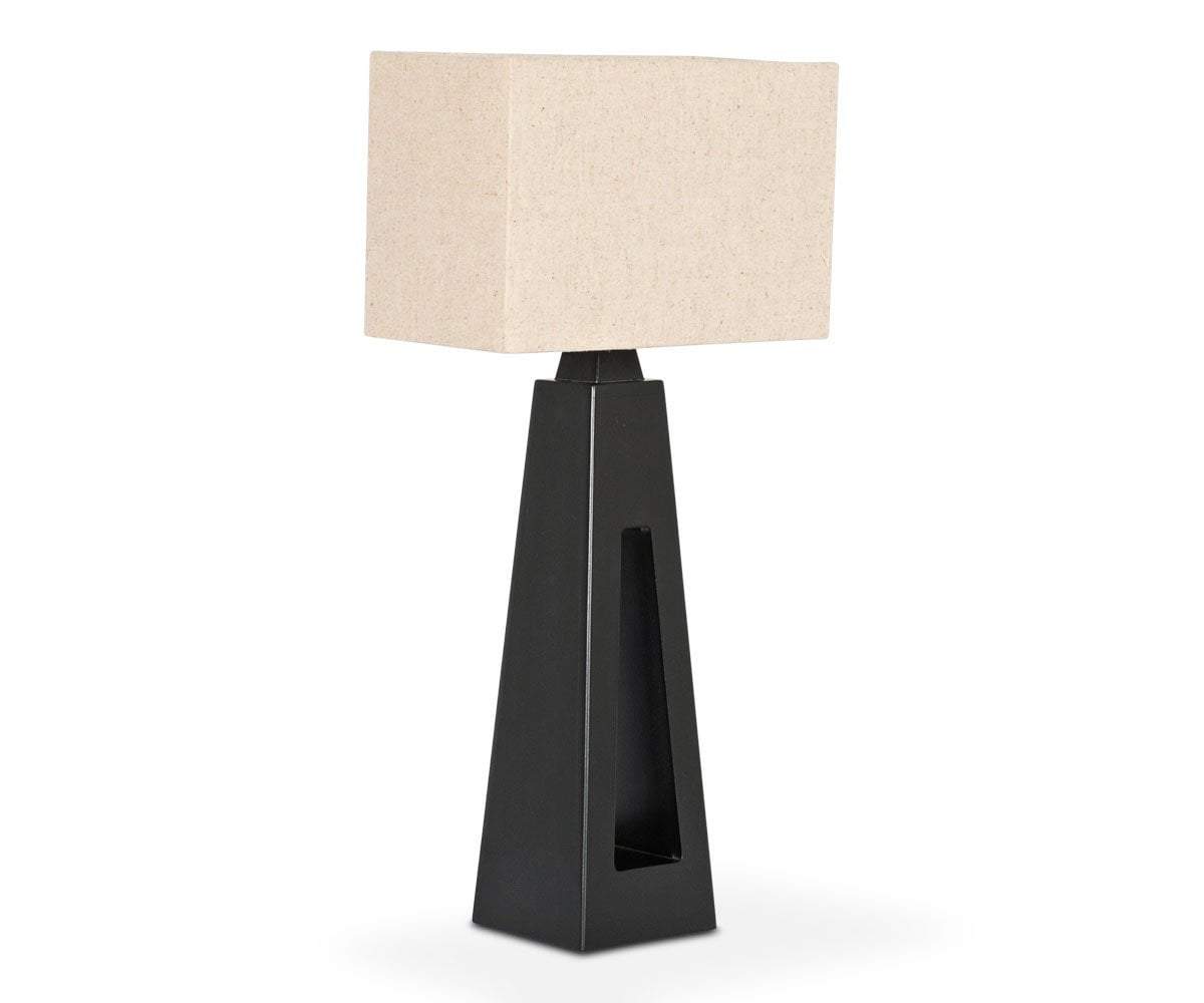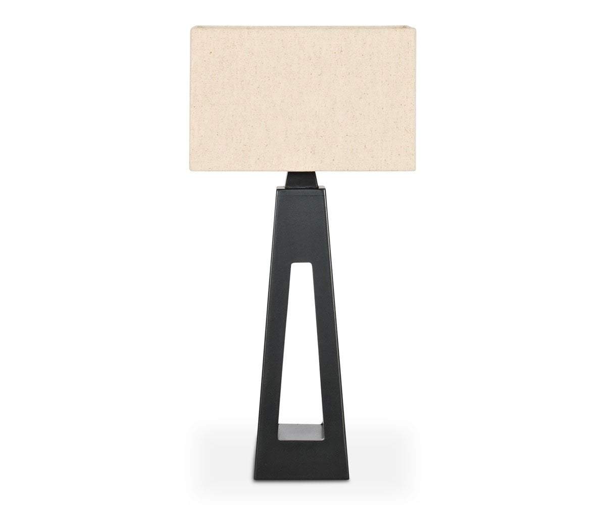 Even when it’s off, the Shangrila table lamp brightens any space with its high contrast aesthetic. The elegant base features a keyhole opening for visual intrigue. Coordinating rectangular shade.
