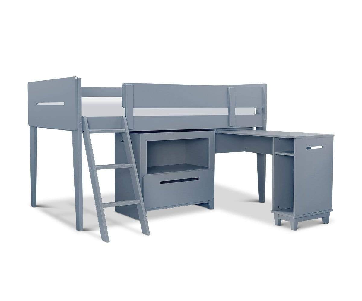 This is your all-in-one superstar. The Sloane twin loft bed saves space beautifully with a twin bed, desk and bookcase all integrated in one design. The safety ladder ensures kids can climb up to the second bunk while the desk gives them a space to create. Store books, toys and other essentials in the bookcase to keep the room tidy.