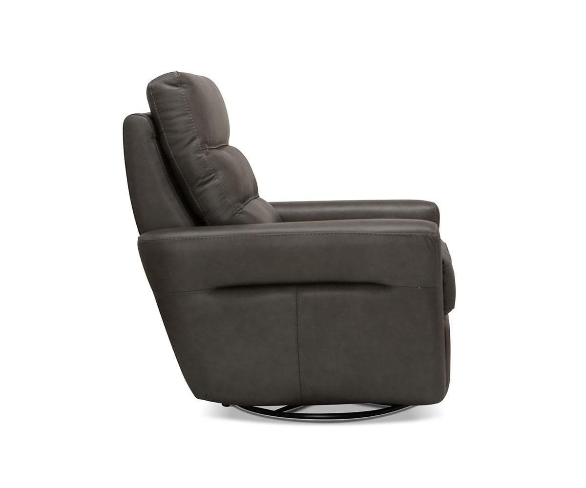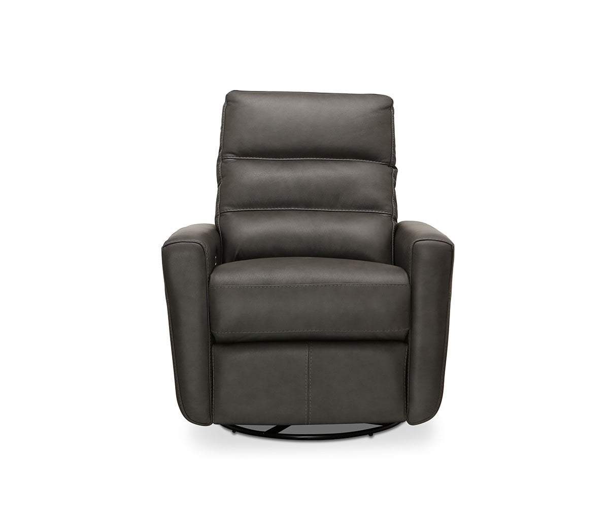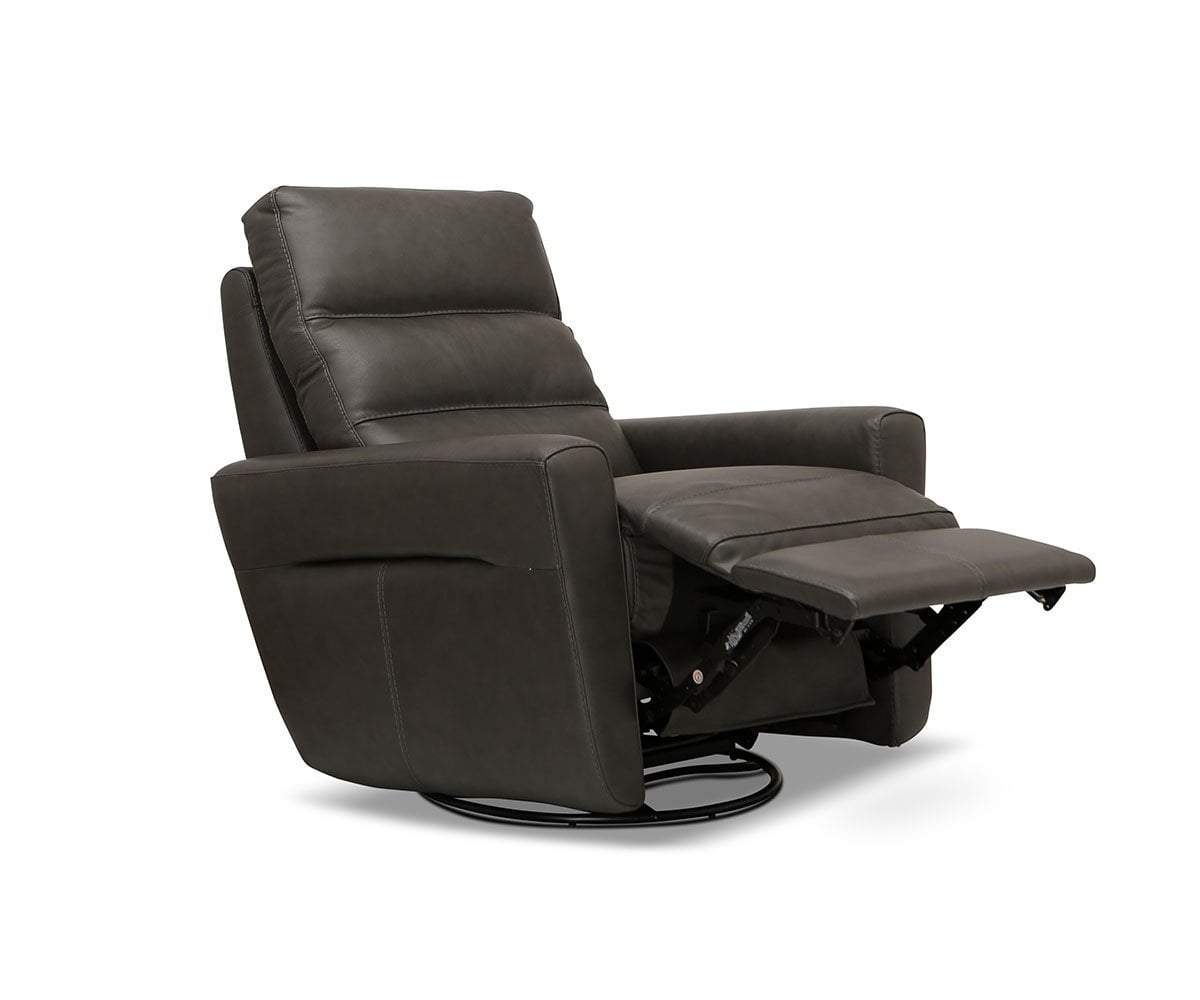 The recliner gets a contemporary and technological update. The Sola power recliner is made in the USA and built for maximum comfort and function. Plush cushioning and ergonomic considerations promote ultimate relaxation. Leather upholstery gives a sleek effect. Swivel functionality, a power-tilting headrest and a built-in USB port complete the ultimate theater-like seat.