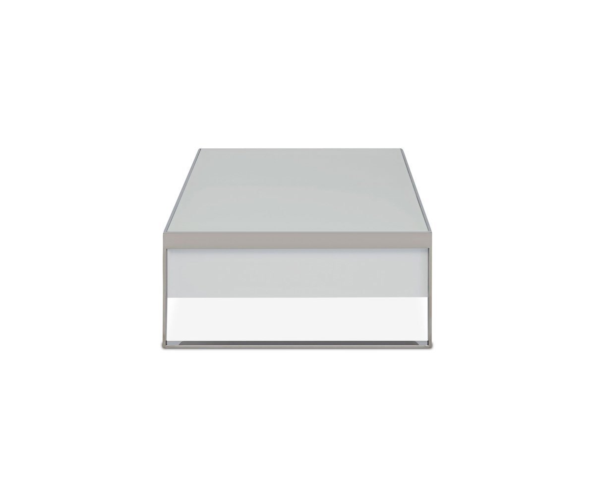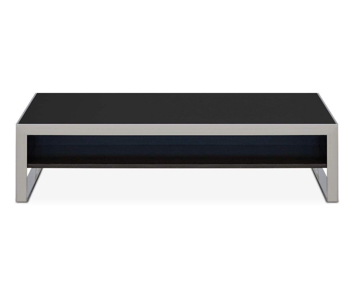 Form and function are cleverly incorporated into the appealing design of the Svante coffee table. Its simple beauty is achieved with a balance of wood and metal elements. The rectangular box is raised slightly and framed by the sleek lines of the stainless steel legs, providing ample storage or display space.