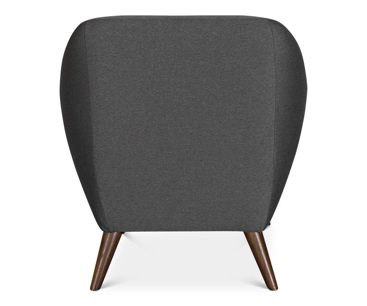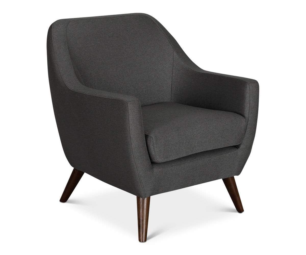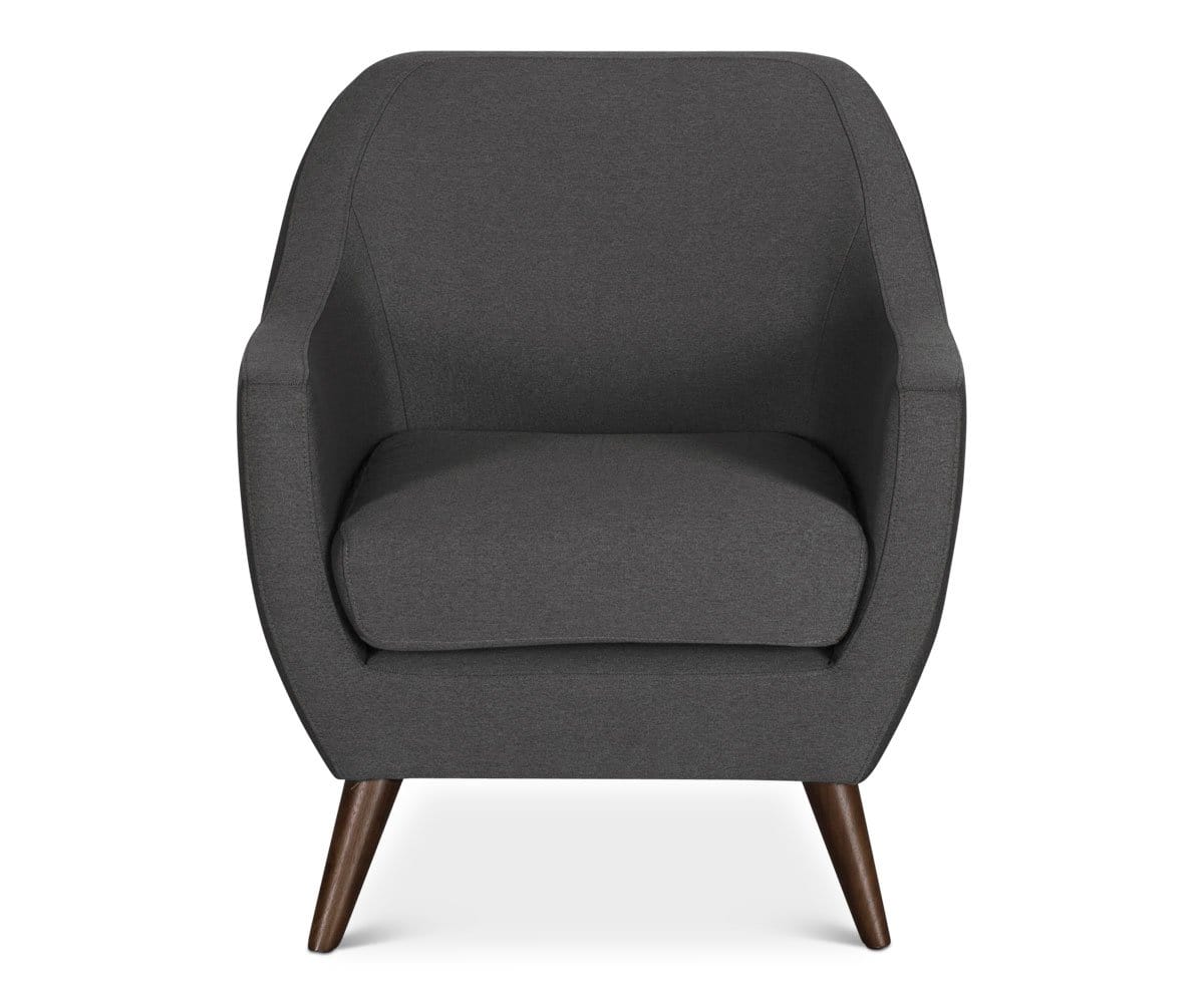 Beautifully tailored, the Taisia accent chair is an exhibit of classic modern lines with the drum-style silhouette and angled solid wood legs with a walnut veneer.