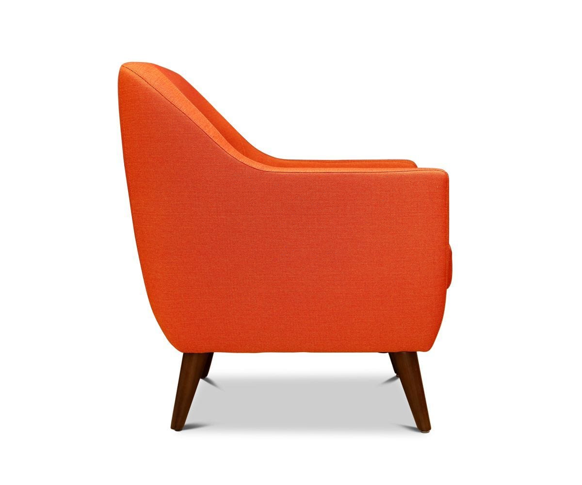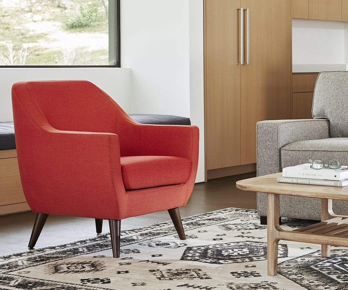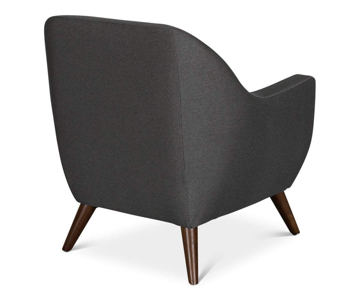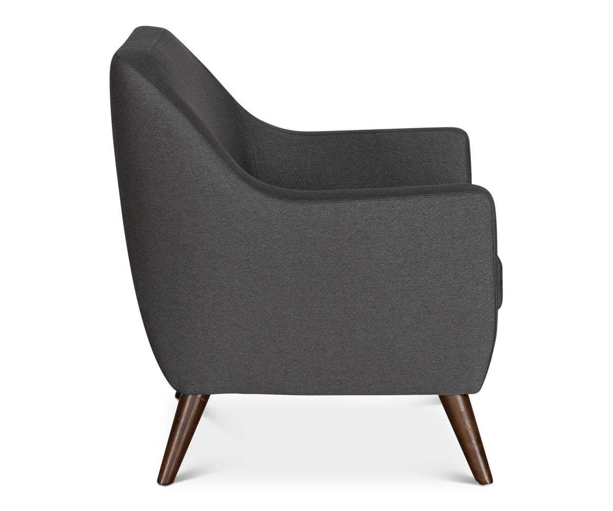 Beautifully tailored, the Taisia accent chair is an exhibit of classic modern lines with the drum-style silhouette and angled solid wood legs with a walnut veneer.