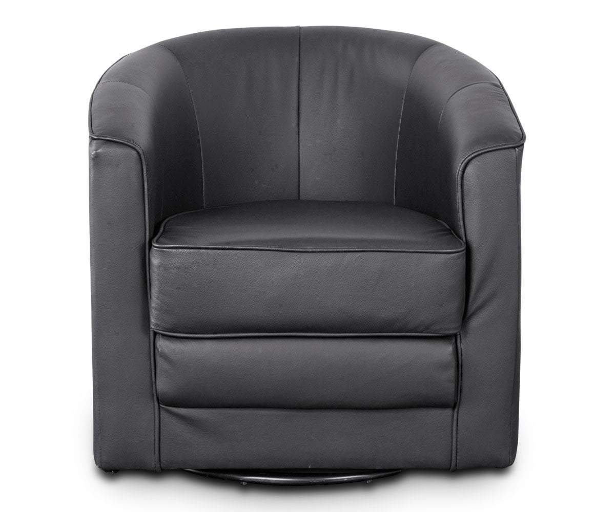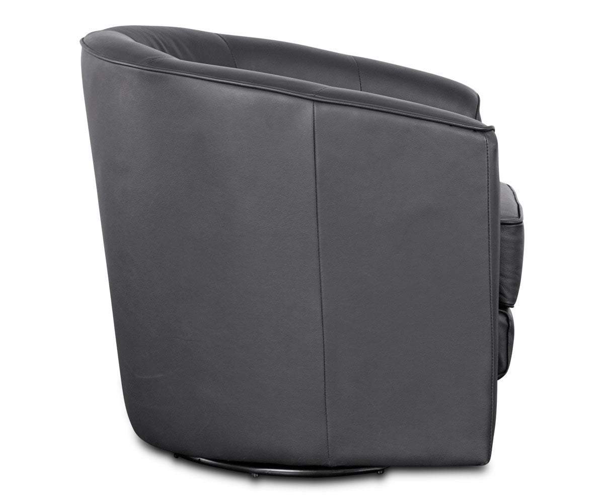 The curves and angles of the Theva swivel chair make for a fashionable statement piece that works well with many different interior design styles.