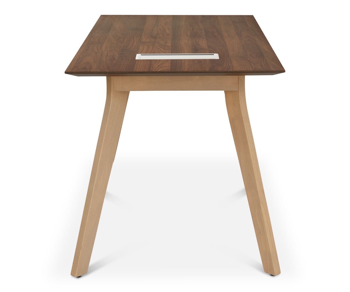 When you need a substantial amount of workspace the Thorsten 63” desk is an excellent option. Solid rubberwood legs in a light wood finish flare at a slight angle supporting the attractive top in a walnut wood grain finish. Its contrasting two-tone color palette adapts to many styles of decor, making it an easy choice as the key component for your office. Additional features incorporated into the design include an aluminum soft-closing cable organizer to conveniently arrange your computer or phone cables, as well as a matching modesty panel to complete the professional look.