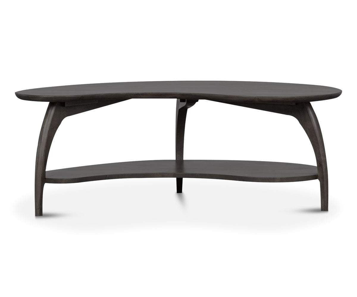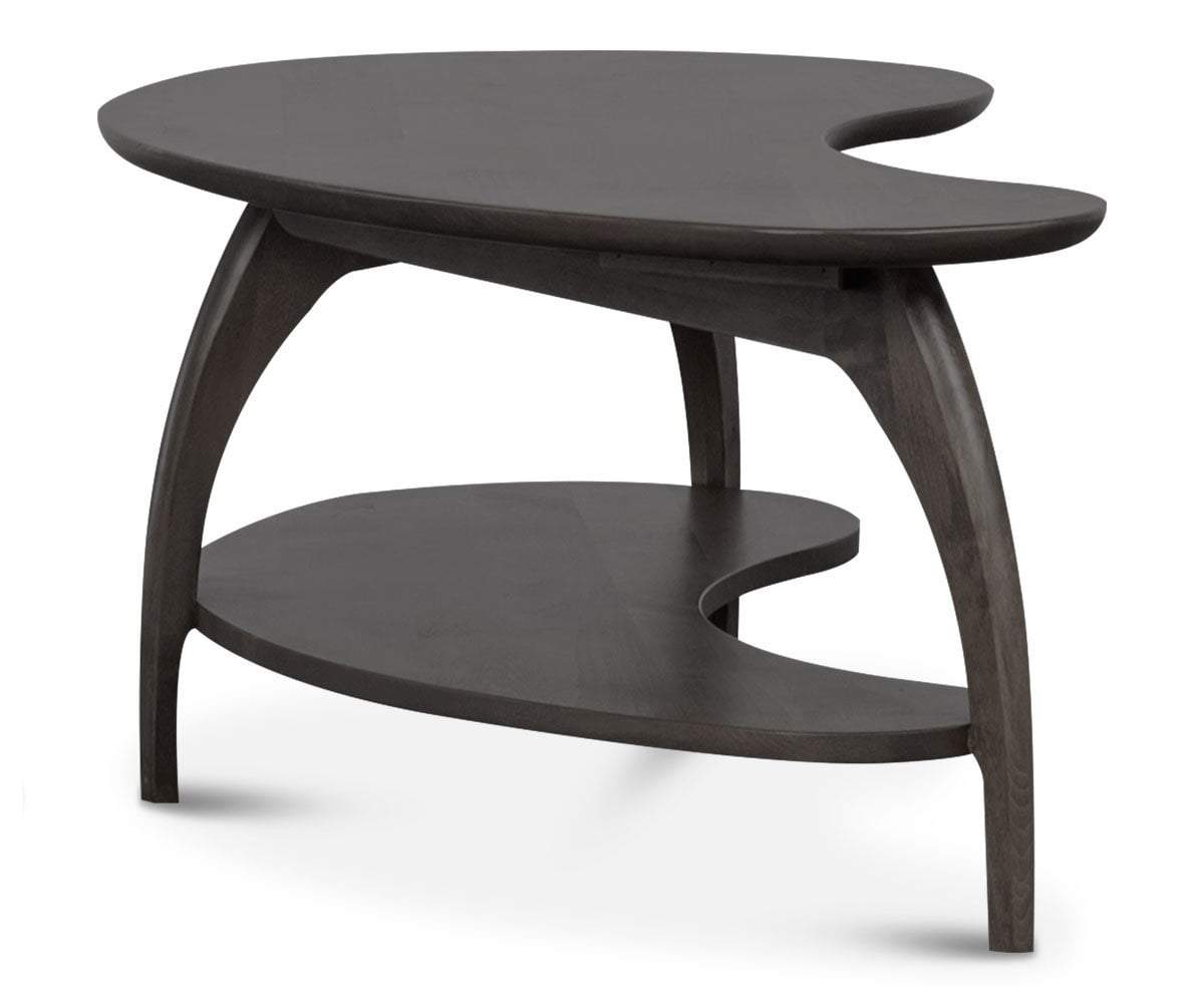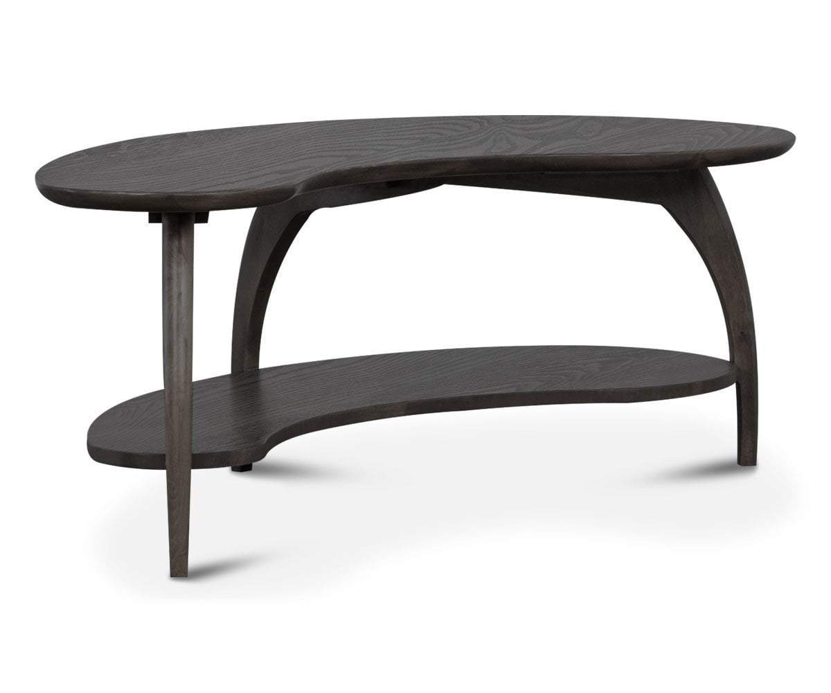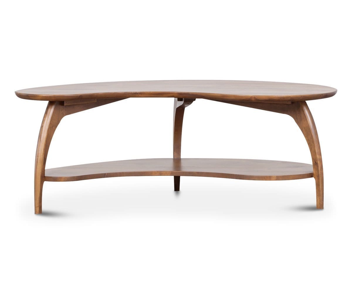 The Tibro coffee table features a kidney-shaped design for visual interest and movement. A lower shelf adds an organization factor and is the perfect place for magazines, remotes and more. This table is hand-crafted in Oregon from wood sourced from one of the world's most carefully-managed forests.