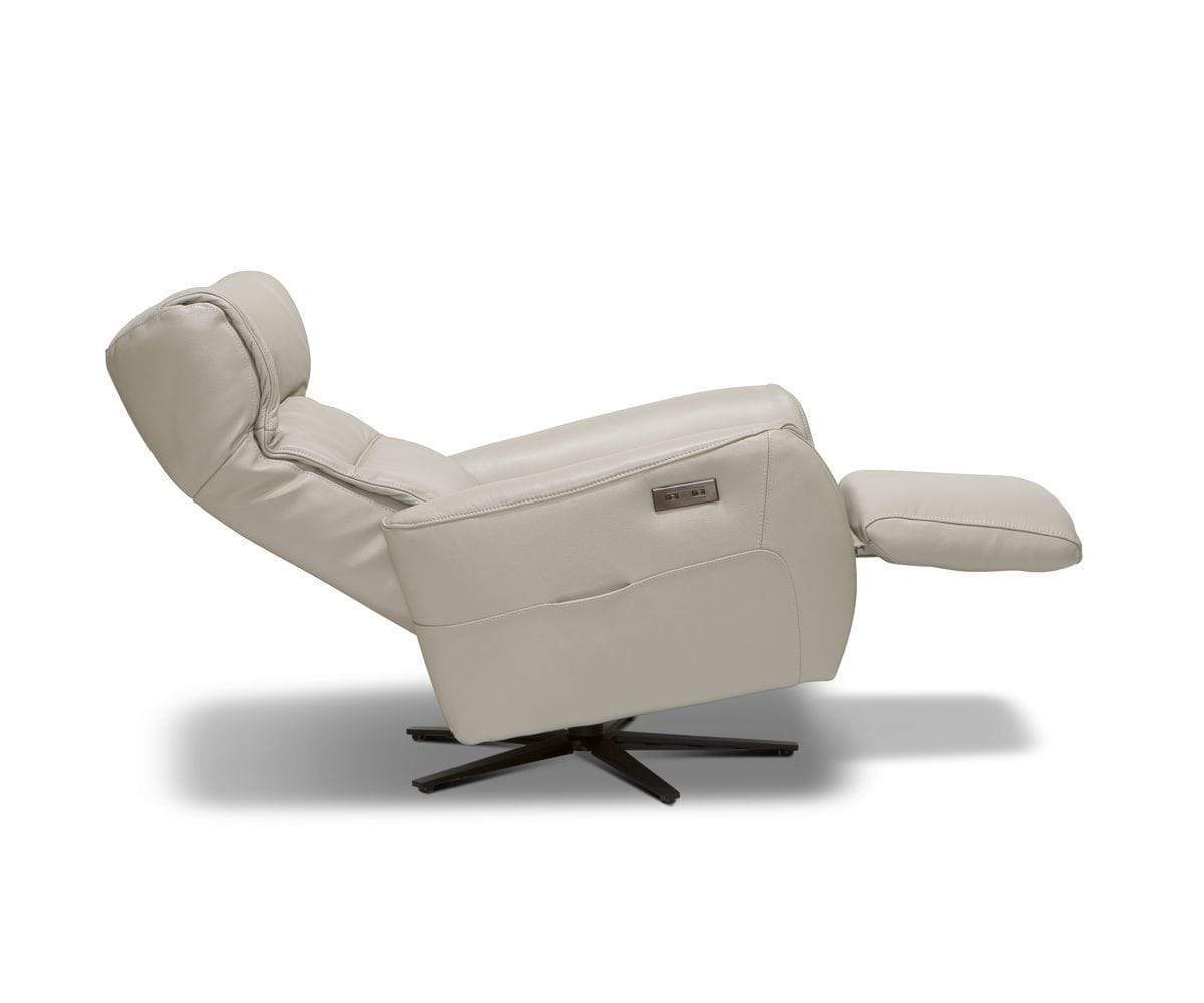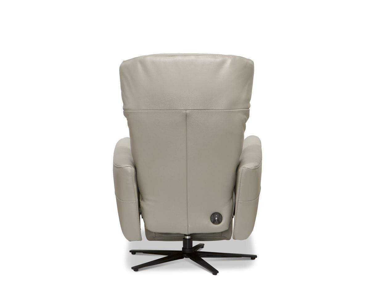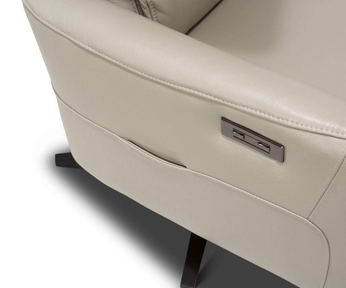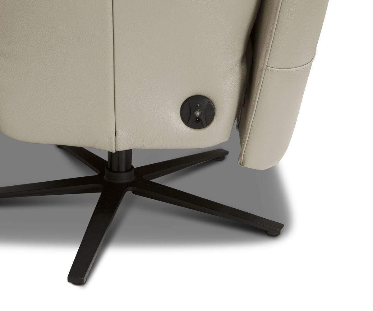 The Tobias power recliner fuses style, comfort and technology. A slim profile, high backrest and metal pedestal base bring a sleek, modern look to your space. Simply push a button to recline—an internal battery pack (hello, cordless operation) powers your comfort. The built-in USB port keeps your devices charged and within reach. Rich leather upholstery envelops smooth cushioning that’s supportive and unbelievably comfortable.
