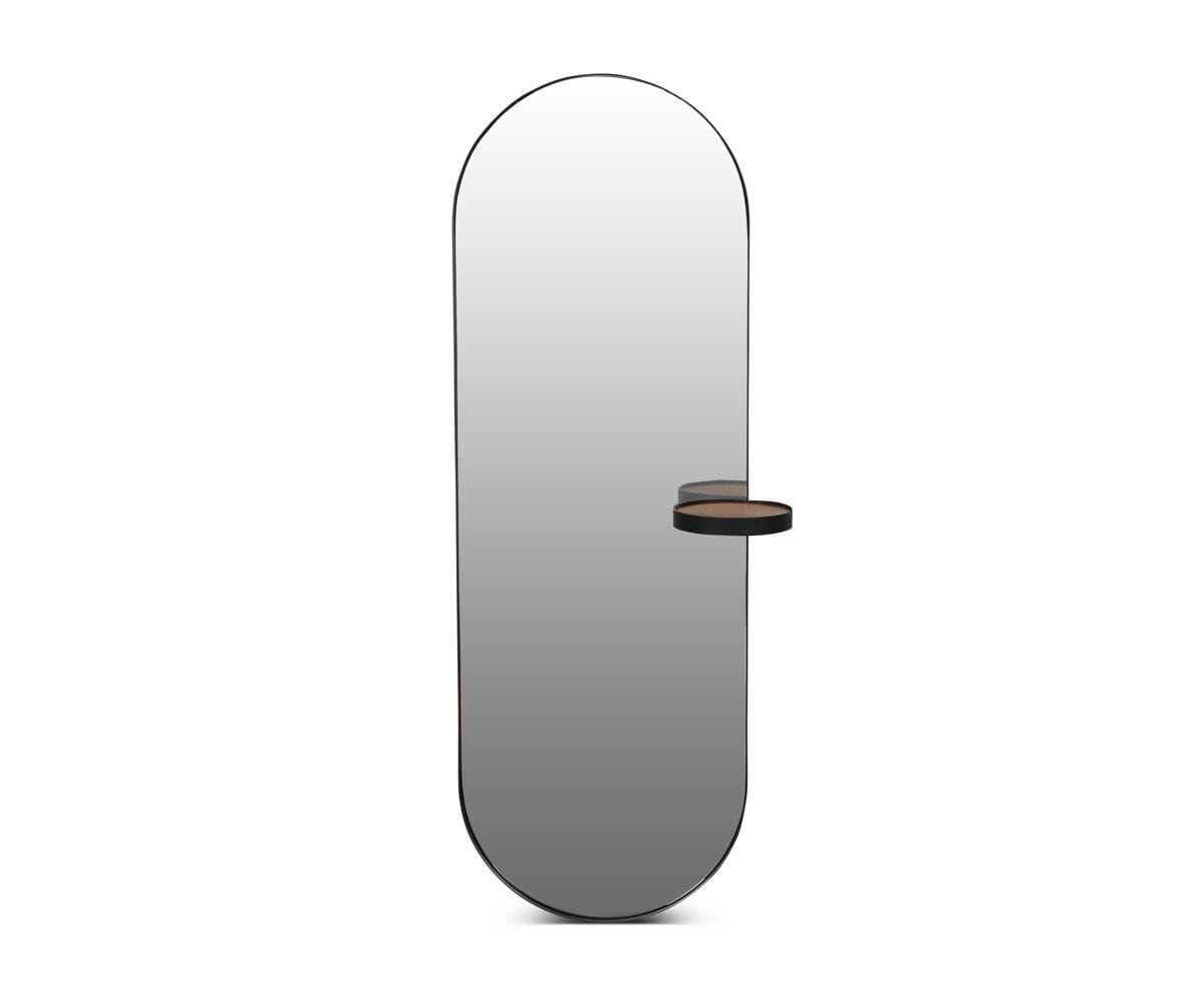 The Toive wall mirror not only adds practical function to your space, it also brings unique style. Rounded at the top and bottom with an attached circular shelf, this tall mirror is designed to enhance any room in your home.