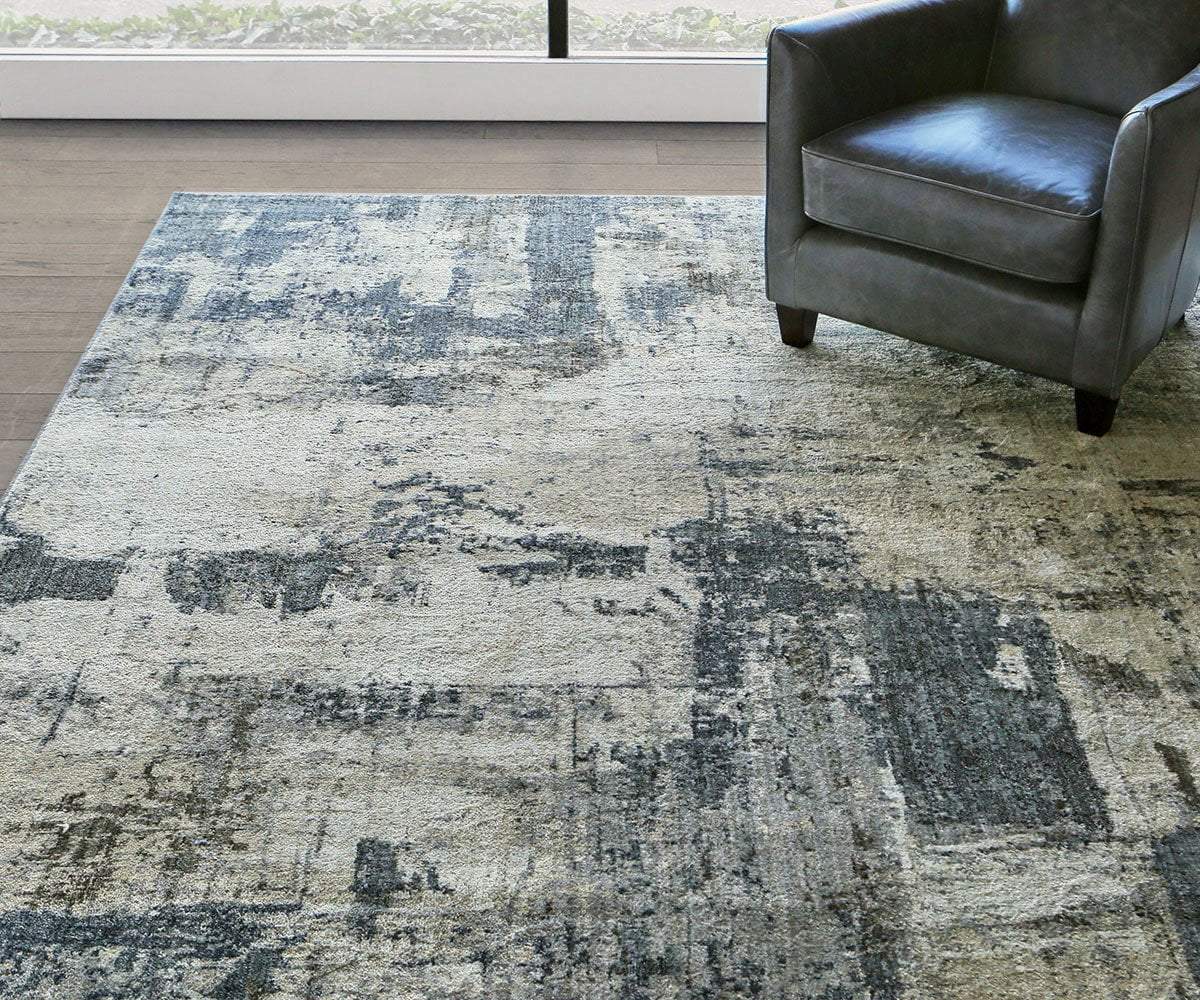 Resembling a modern abstract work of art, the Treviso rug pattern displays a versatile neutral palette with wide brush strokes that overlap to create an lively image. This eco-friendly floor covering is made in the USA from recycled plastic bottles that go through a patented transformation process to create strong, yet soft yarn. The result is a beautiful rug, pleasing to the touch that also provides superior durability and stain resistance.