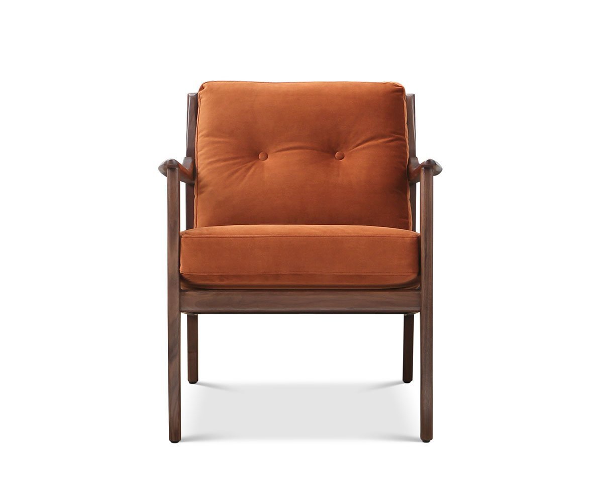 Sit back and relax in the Undra lounge chair. Framed in solid walnut with sculptural details, this timeless piece masterfully displays mid-century modern design, ensuring it will be a go-to spot for years to come. Both seat and back cushions are upholstered in a beautiful, soft fabric, adding to the comfort, as well as visual interest. Set at just the right amount of recline, this living room accent is made for comfort, without sacrificing on space or style.