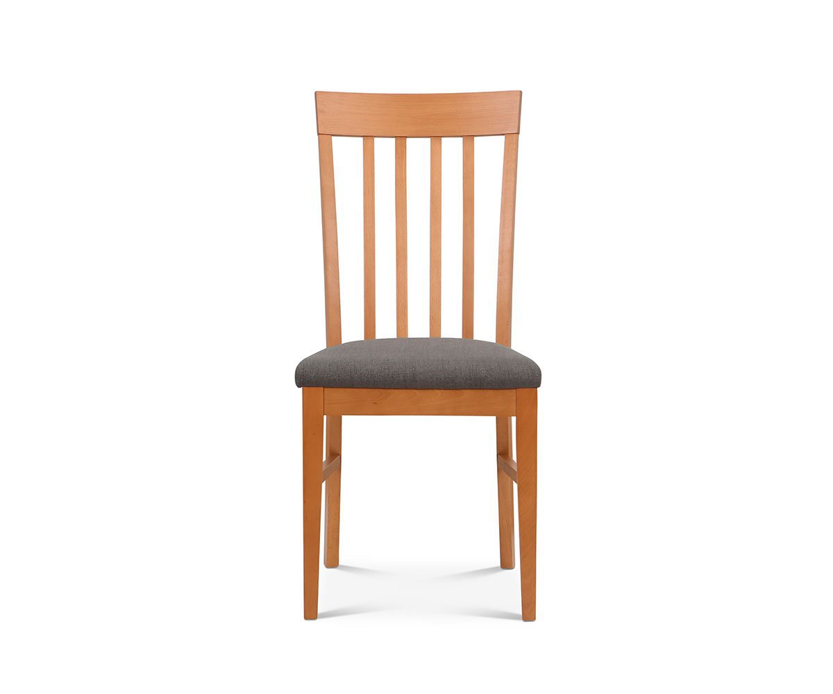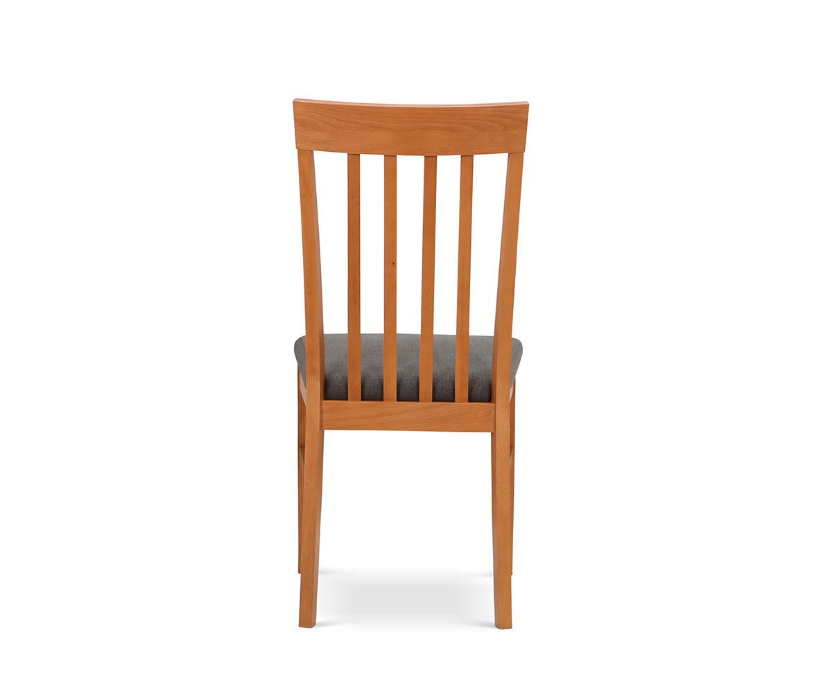 Simplicity reigns supreme with the Vackra dining chair. Clean lines produce an air of modern design with distinctly traditional roots. The high curved backrest offers comfortable support and is slatted for breathability. Fine upholstery complements the warm wood tones of the finish on the solid beech wood frame. Pair it with farmhouse-style tables for a cohesive look, or pedestal tables for an eclectic feel.