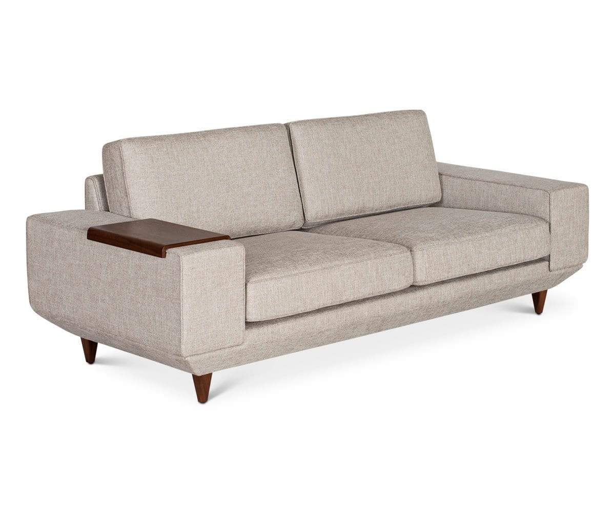 Create a curated aesthetic in your home when you add the unique Vieda sofa. Inspired by mid-century style, it boasts masculine lines and shapes with a tailored appeal. The low back and armrests are reminiscent of lounge-era pieces and create a relaxed feel. Includes one specially designed tray which fits either armrest.